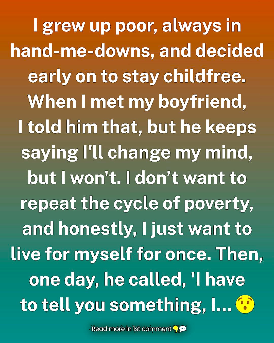 Fast forward to now: I’m in my mid-20s and living with my boyfriend. I love him—he’s kind, funny, and we click on so many levels. The problem is, he’s convinced I’ll eventually “change my mind” about having kids. I’ve told him, very clearly, that I won’t. I don’t want to repeat the cycle of poverty, and honestly, I just want the chance to live for myself for once. We’re both working, and we’re barely covering our bills as it is. A kid wouldn’t just strain us—it would break us, financially and mentally.