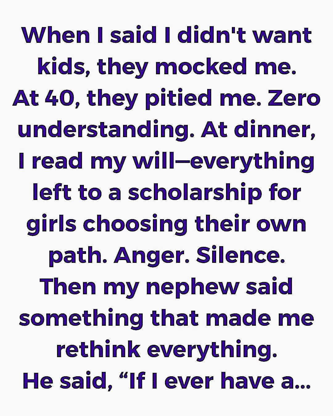 family I didn’t want children, I was twenty-seven and full of idealism. They laughed, brushed it off as a passing phase, and insisted I’d “change my mind once the right man came along.”