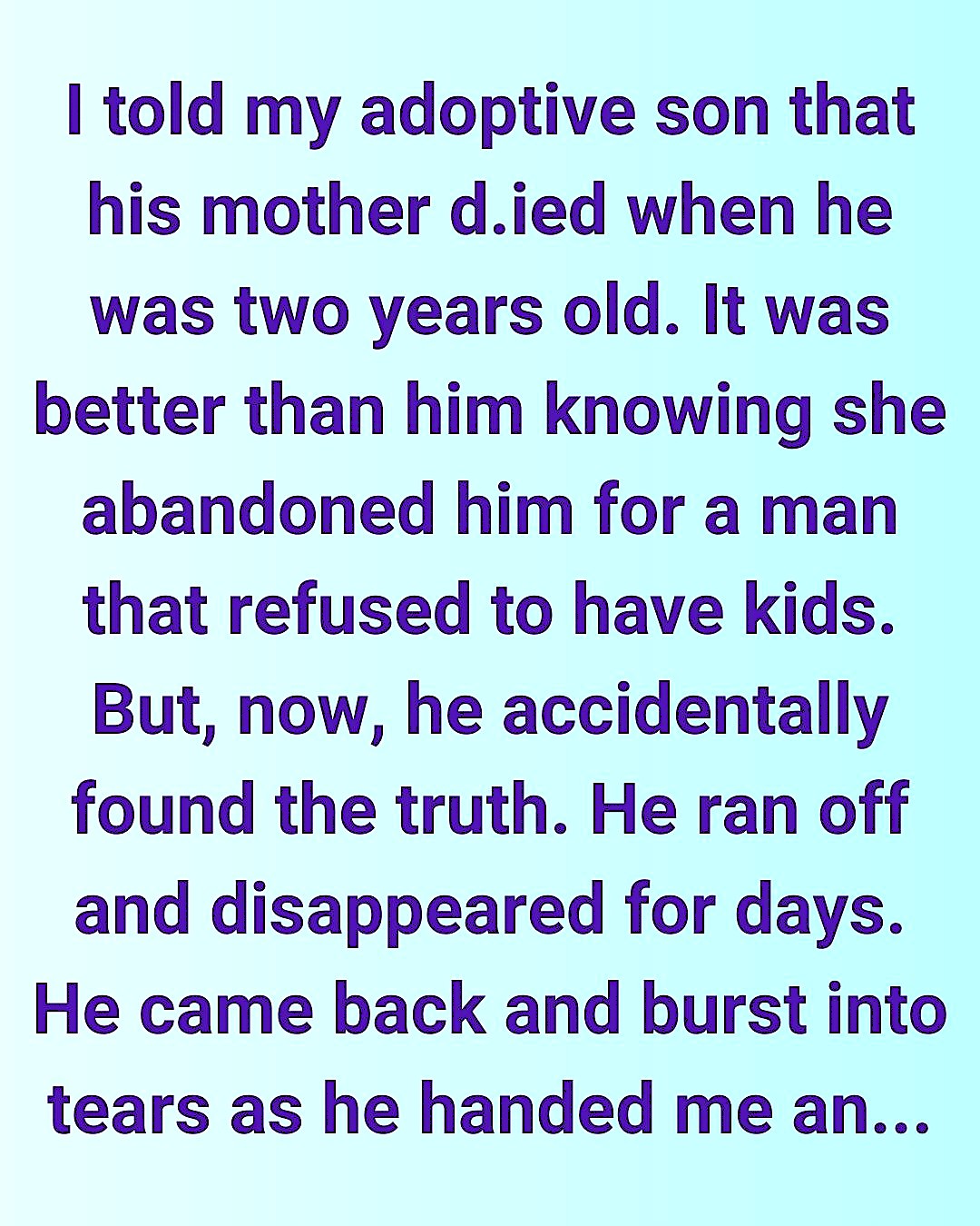 Years went by, and he grew into a bright, kind young man. He’s now in his final year of college. Last week, he came home for a visit—but instead of the warm smile I expected, he barely spoke to me. His eyes were cold, and he avoided my gaze.