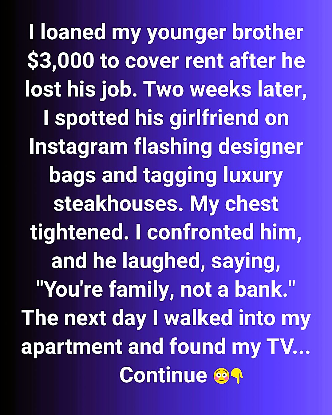 “You reported me to the police? That’s chilly. “No,” I replied. “Stealing from your own brother is cold.” The TV was permanently gone, but I was able to retrieve some of my belongings from the pawn shop, replace the locks, and block his number.