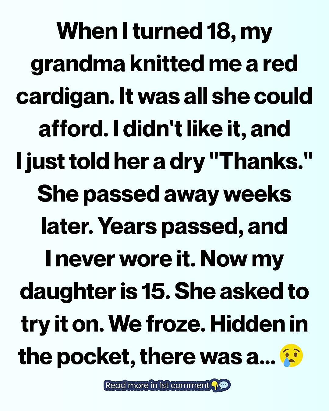 At eighteen, I wanted independence, not reminders of how little money we had. I wanted concerts, friends, noise, life. A cardigan felt like something from another era—hers, not mine.