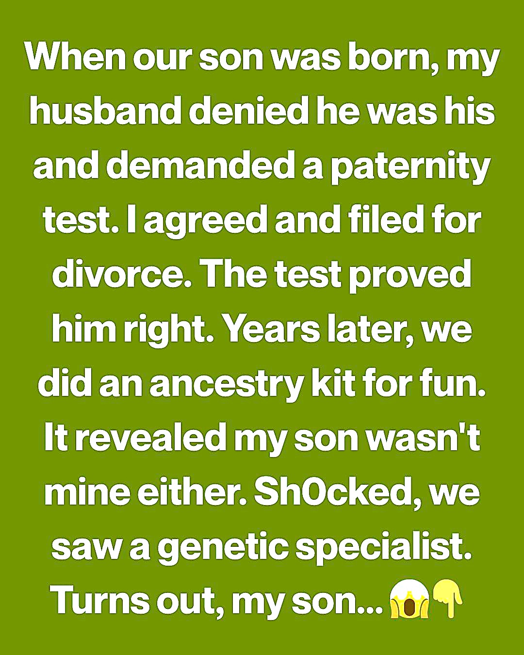 When the results came back, my heart stopped. According to the test, my son wasn’t biologically related to me either.