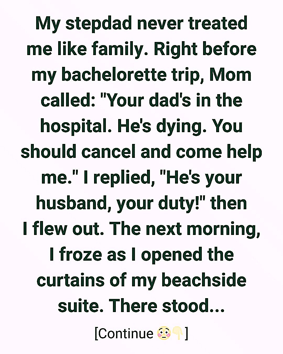 My stepdad never treated me like family. Right before my bachelorette trip, Mom called: “Your father’s in the hospital. He’s dying. You should cancel and come help me.”