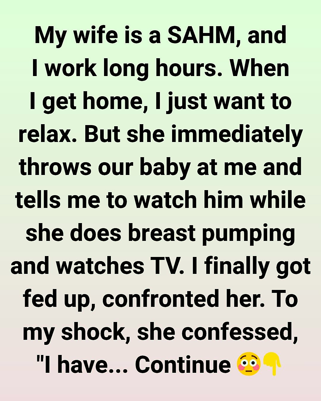 The man, visibly angry, wrote, “My wife is a SAHM and I work long hours. When I get home, I just want to take a break for a little bit before helping out. Every day, I get back, she immediately throws our baby at me and tells me to watch him while she goes breast pumping and watches Korean drama for like an hour.