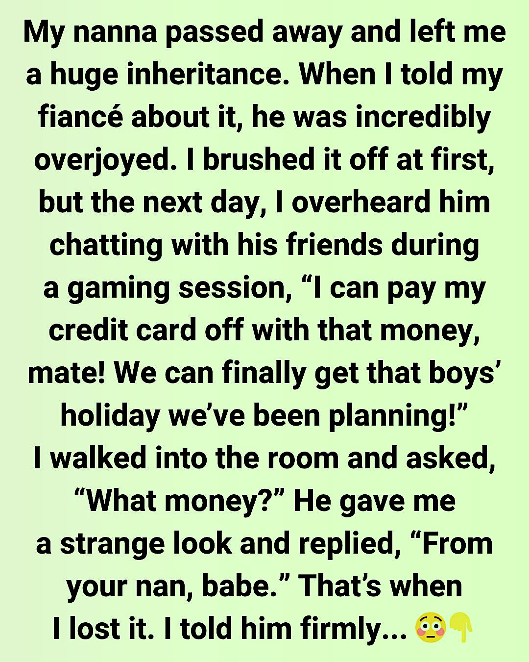 When I shared the news with my fiancé, he seemed extremely excited—more than I had expected. I brushed it off at first, but the next day, I overheard him chatting with his friends during a gaming session, saying, “I can pay my credit card off with that money, mate! We can finally get that boys’ holiday we’ve been planning!”