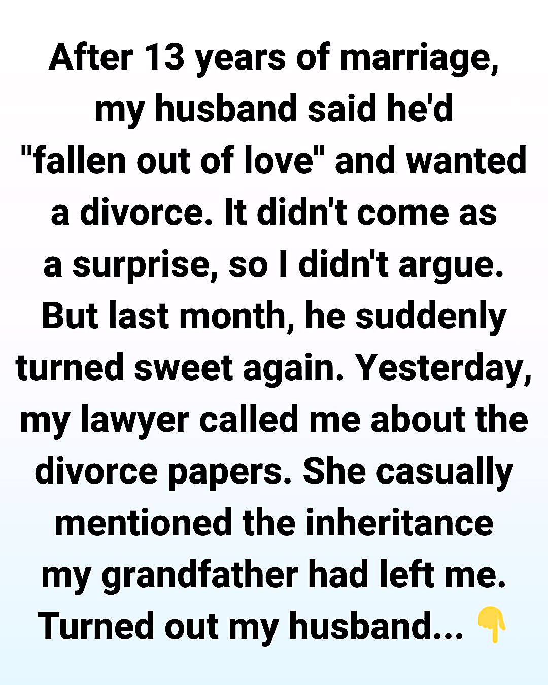 Now I’m done playing along. I’m letting the divorce move forward, and I’m making sure my inheritance stays protected. I feel disgusted that he thought he could trick me into falling for his act.