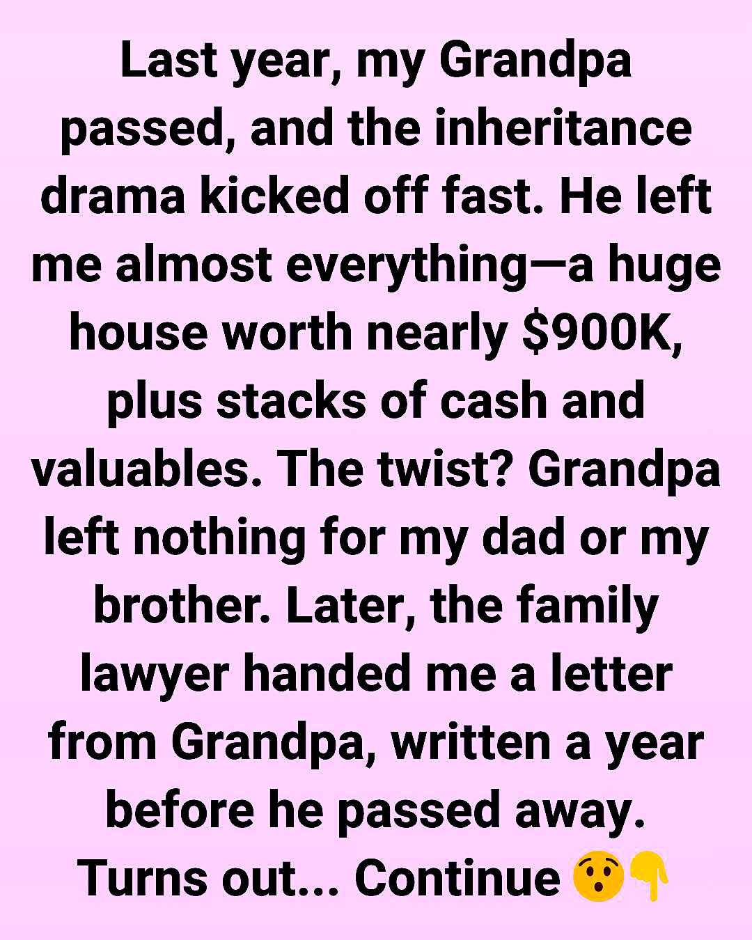 Last year, my grandpa passed, and the inheritance drama kicked off fast. I’m Richard, 33, and to my shock, he left me almost everything—a huge house worth nearly $900K, plus stacks of cash and valuables adding up to over $250K.