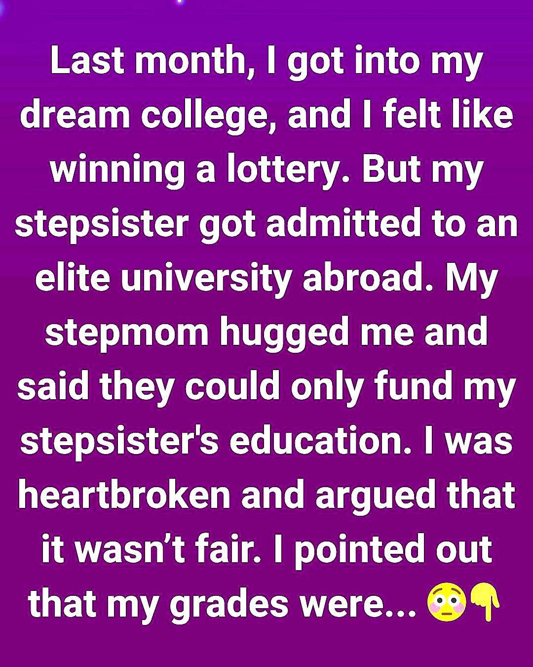 After years of hard work, I finally got accepted into my dream university, a moment that should have been filled with joy and celebration. But that happiness didn’t last long. My stepsister also received an acceptance letter—from an expensive university far away.