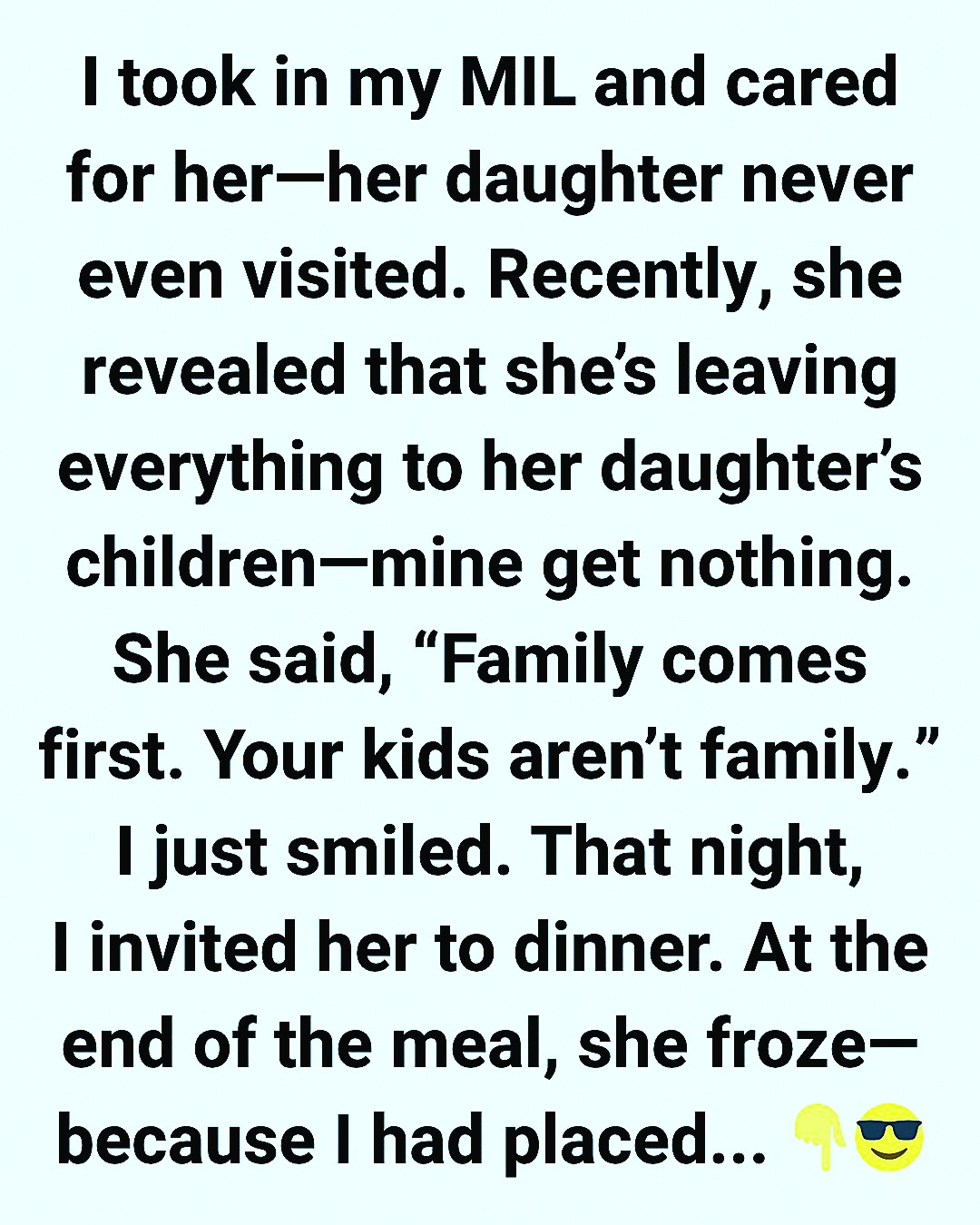 It happened one quiet afternoon. She was sitting in her favorite chair, and out of nowhere, she told me that when she passed, everything—her savings, jewelry, and house—would go to her daughter’s children. “Family comes first,” she said firmly. “Your kids aren’t family.”