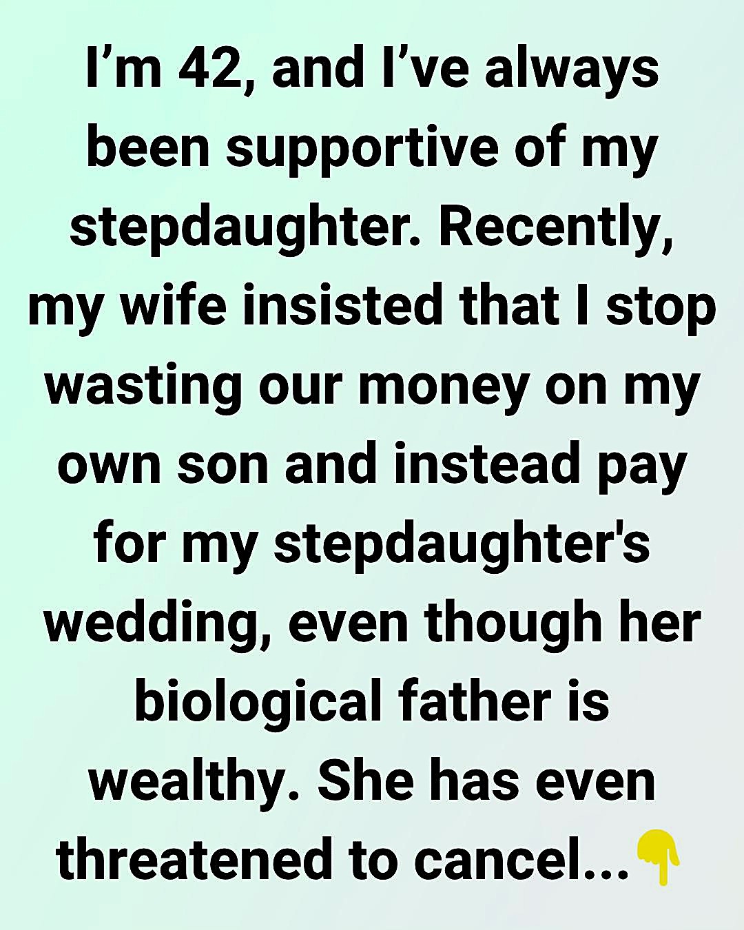 Her daughter is getting married in just a few weeks, and she’s short on money for the venue. I refused to contribute—not because I don’t care, but because her biological father is wealthy and has already offered to help. Still, my wife refuses to accept a cent from her ex.