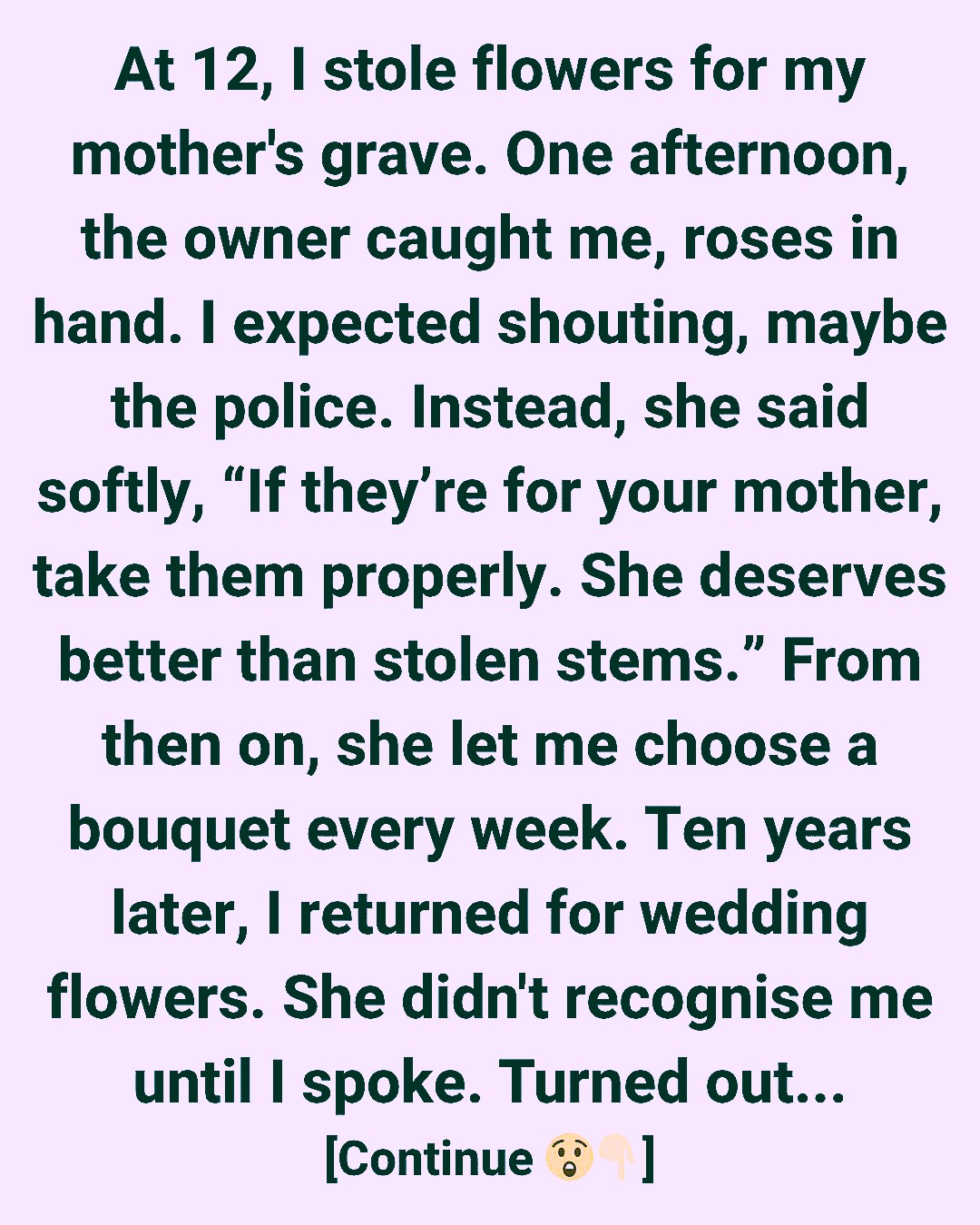 At twelve, I used to steal flowers from a small shop down the street to place on my mother’s grave. She had passed away the year before, and my father worked long hours, too tired to notice how often I slipped out.