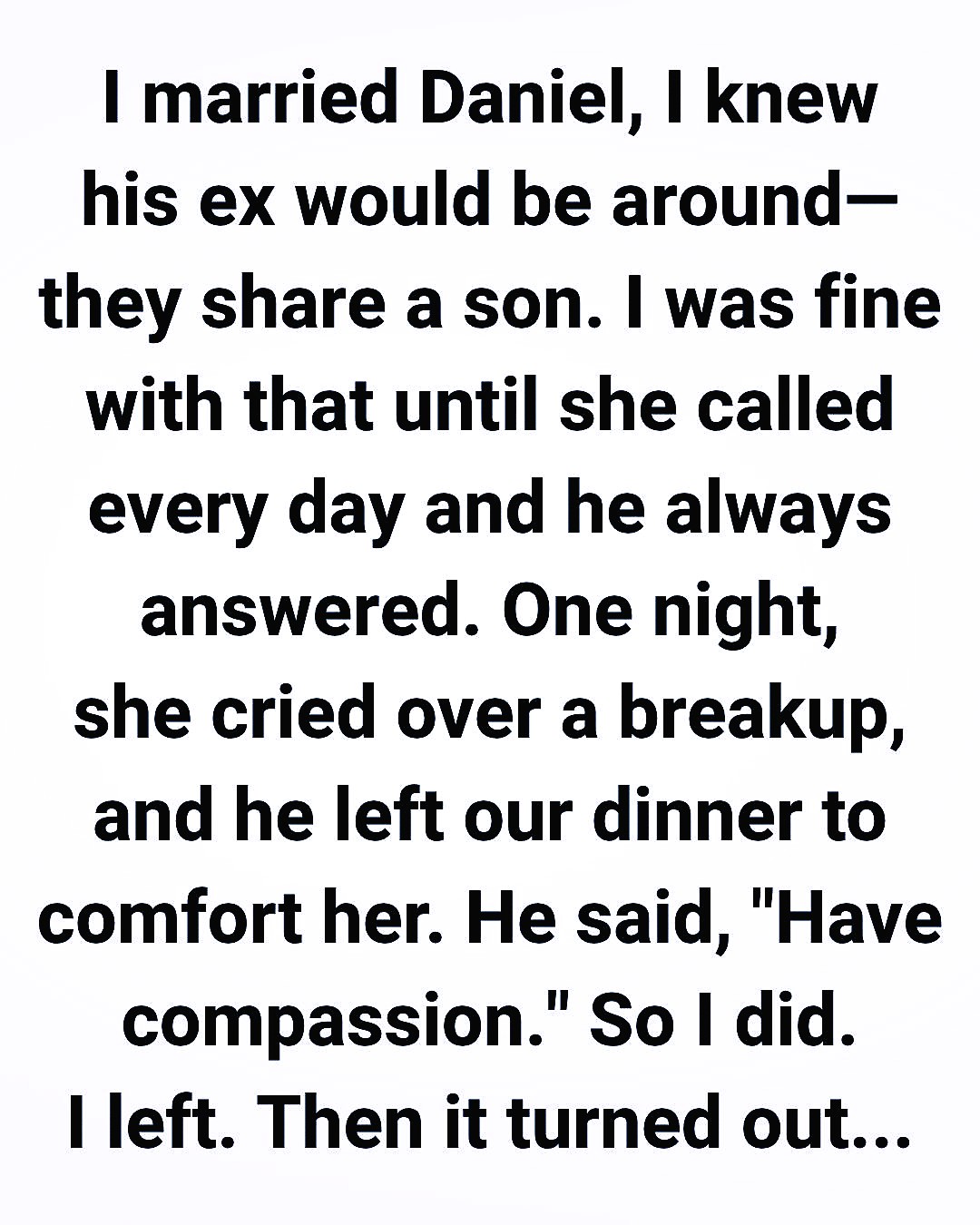 That’s when everything became painfully clear. Compassion wasn’t the problem — respect was. And in that moment, I realized I wasn’t just sharing my husband with his past; I was competing with a woman who no longer wore his ring but still somehow held all the power over him.