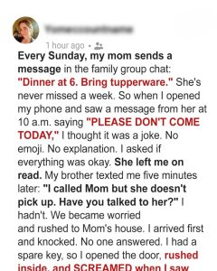 Mom Hosted Dinner Every Sunday Until One Week She Texted, ‘Please Don’t Come Today’ — I Rushed over and Screamed When I Opened the Door