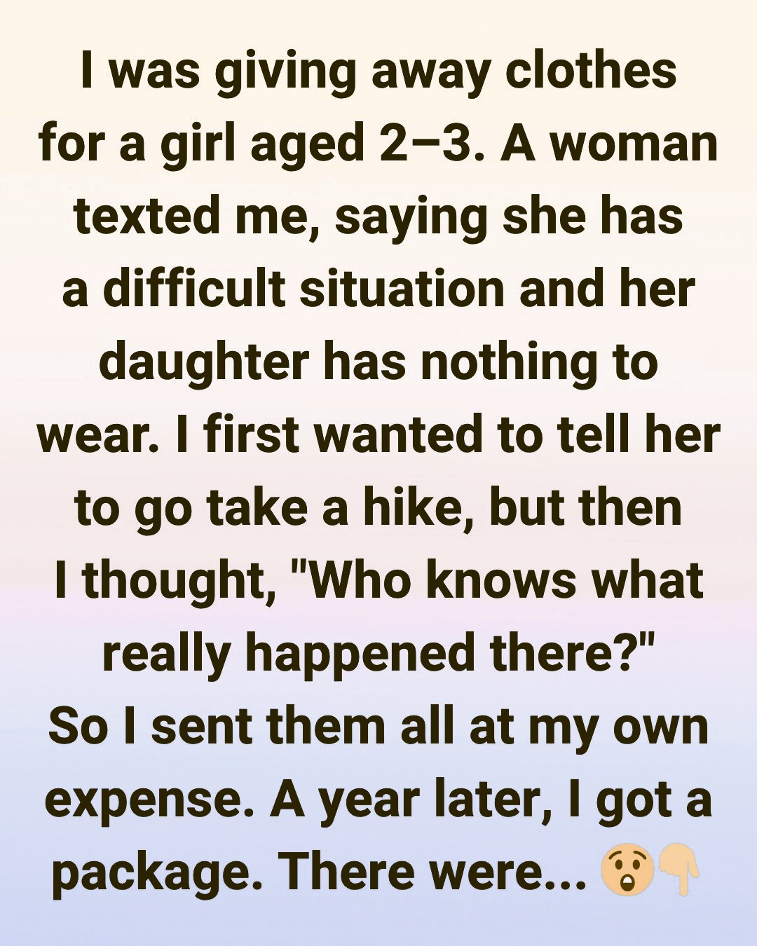 Not long after, a woman messaged me. Her words were hesitant but sincere. She said she was in a difficult situation, that her little girl had nothing decent to wear, and asked if I could send the clothes by mail because she couldn’t come in person.