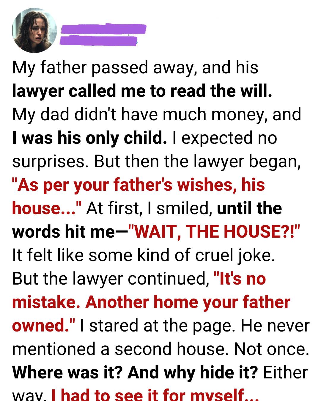 When my father passed away, I thought I had buried every tie that connected me to him. But then his lawyer called. A house I never knew existed—and the woman who lived there—opened a door to a truth I never expected.