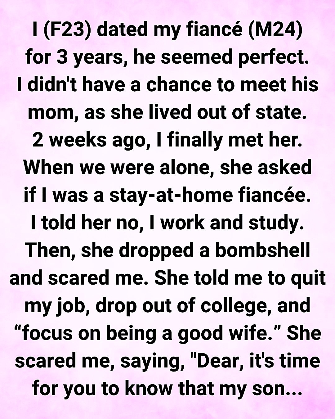 When she and I were alone, she asked if I was a stay-at-home fiancée. I told her no—I work and study. Then she dropped a bombshell that genuinely scared me. She told me I needed to quit my job, drop out of college, and “focus on being a good wife.”