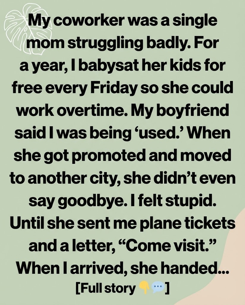 I Babysat My Coworker’s Kids for Free Every Friday—What She Gave Me Back Changed How I See Kindness Forever