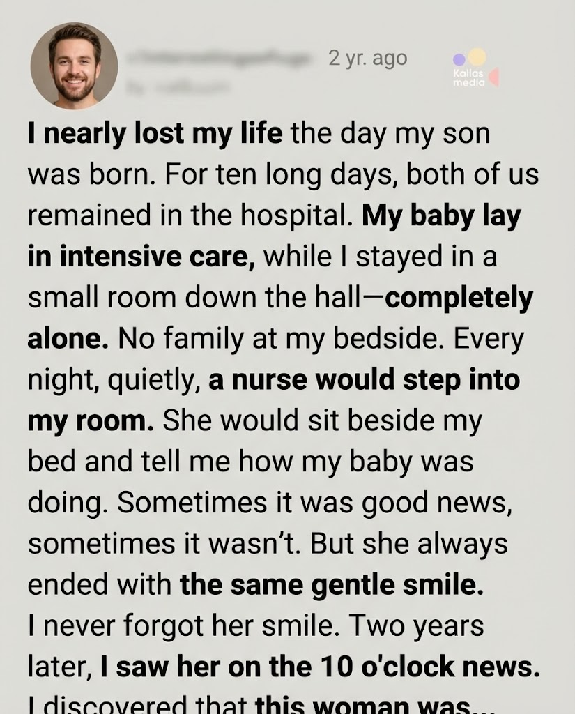 Every night, quietly, a nurse would step into my room. She never rushed through the door. She never acted as if I were an inconvenience. Instead, she would pull up a chair beside my bed and sit with me. She told me how my baby was doing—what the doctors had said, how his breathing sounded, whether he had opened his eyes. Sometimes the news was good. Sometimes it wasn’t. But she always ended with the same gentle smile—the kind that made you believe tomorrow was still possible.