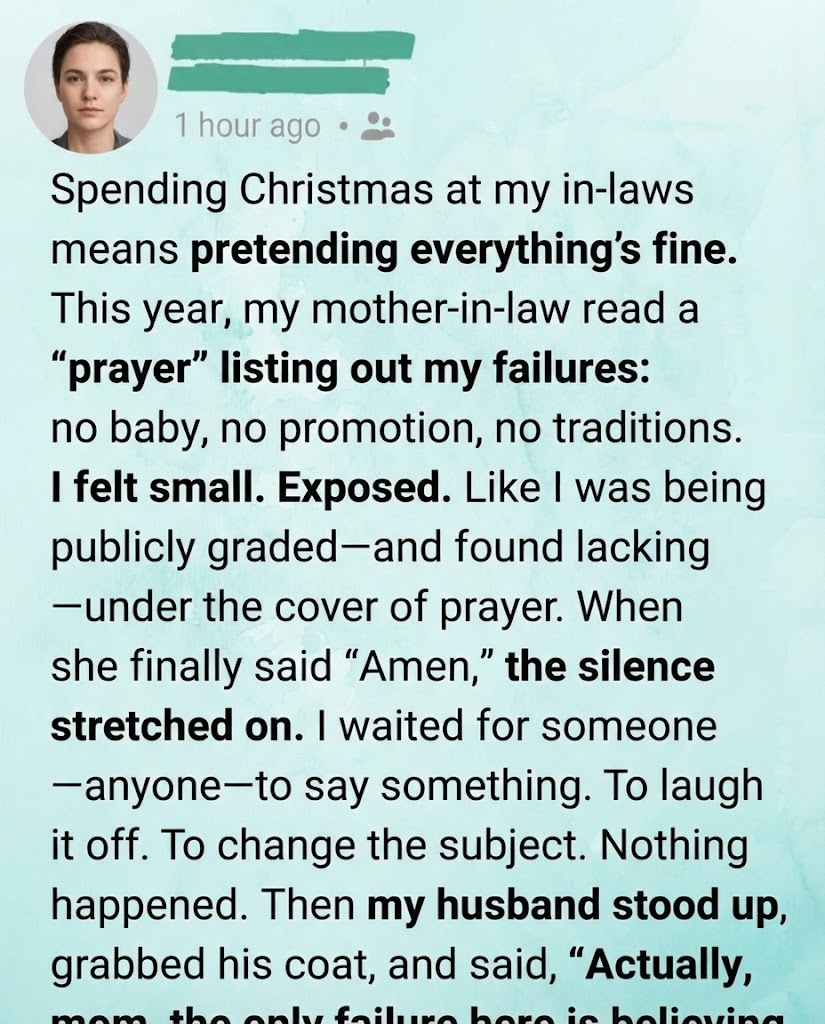My Mother-in-Law Turned Christmas Prayer Into a List of My Failures—My Husband’s Response Left the Room in Sh0ck