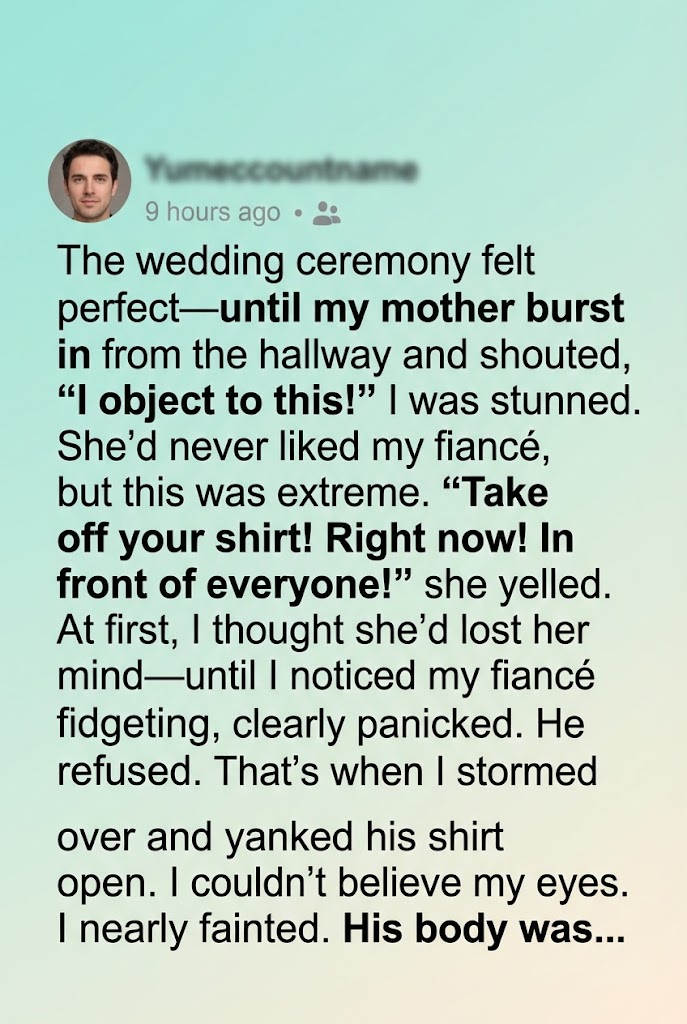 The officiant, looking utterly bewildered, tried to regain control. My fiancé, shirt open, stood there, exposed, not just physically, but emotionally. He looked at me, his eyes filled with a pain I couldn’t understand, a profound sorrow that mirrored my mother’s.