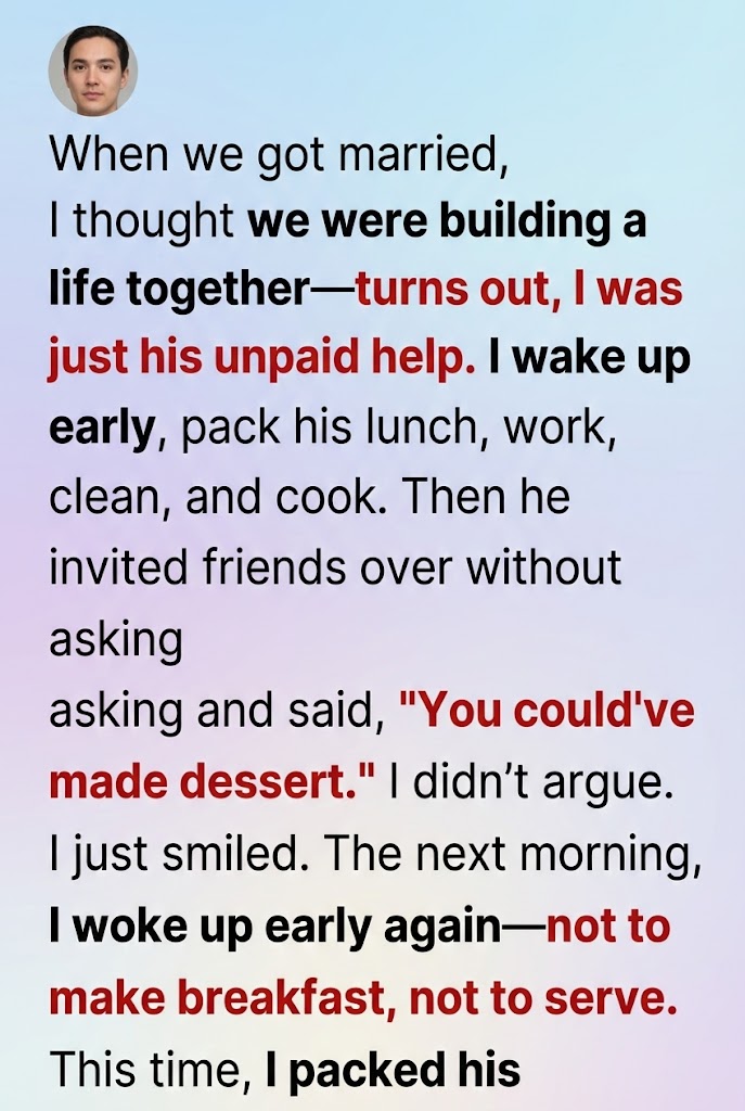 Every morning, I woke up before the sun just to pack his lunch. I worked full-time, rushed home, cooked dinner, folded laundry, wiped counters, washed dishes… and still heard him say, “You never do enough around here.” That sentence became the background noise of my life — quiet, constant, exhausting.