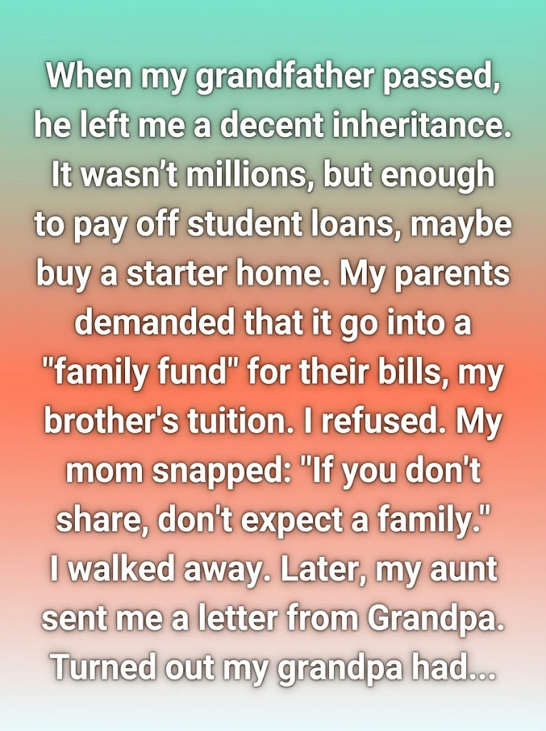 I kept reading, my eyes blurring. It explained everything. Their control. Their fear. The panic I’d seen in their eyes that night. They weren’t trying to control my inheritance for their own greed. THEY WERE TRYING TO CONTROL THE TRUTH.