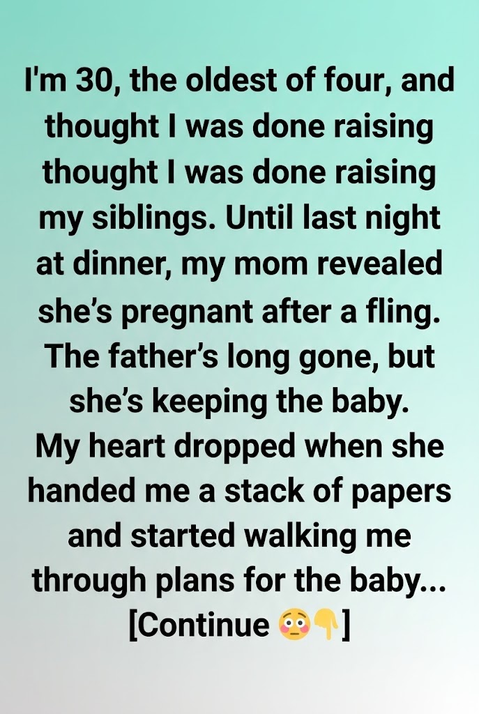 I’m 30 years old, the oldest of four, and for the first time in my life I truly thought I was done raising children who weren’t mine. I love my siblings—every scraped knee I bandaged, every parent-teacher conference I attended on my mom’s behalf, every late night spent helping with homework—but I was exhausted. I finally had my own apartment, my own routine, my own plans. For once, my life felt like it belonged entirely to me.
