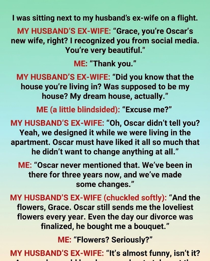 It hit me then: this was the woman my husband once vowed to spend his entire life with. Sitting next to her felt like sharing a row with a ghost—a piece of his past I never expected to meet, much less be trapped beside for the next three hours.