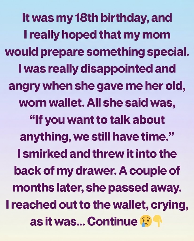 The house was too quiet. The world felt hollow. And when I opened my drawer and saw that forgotten wallet, something broke inside me. My hands shook as I held it, the worn fabric suddenly feeling heavier than any gift I’d ever received.