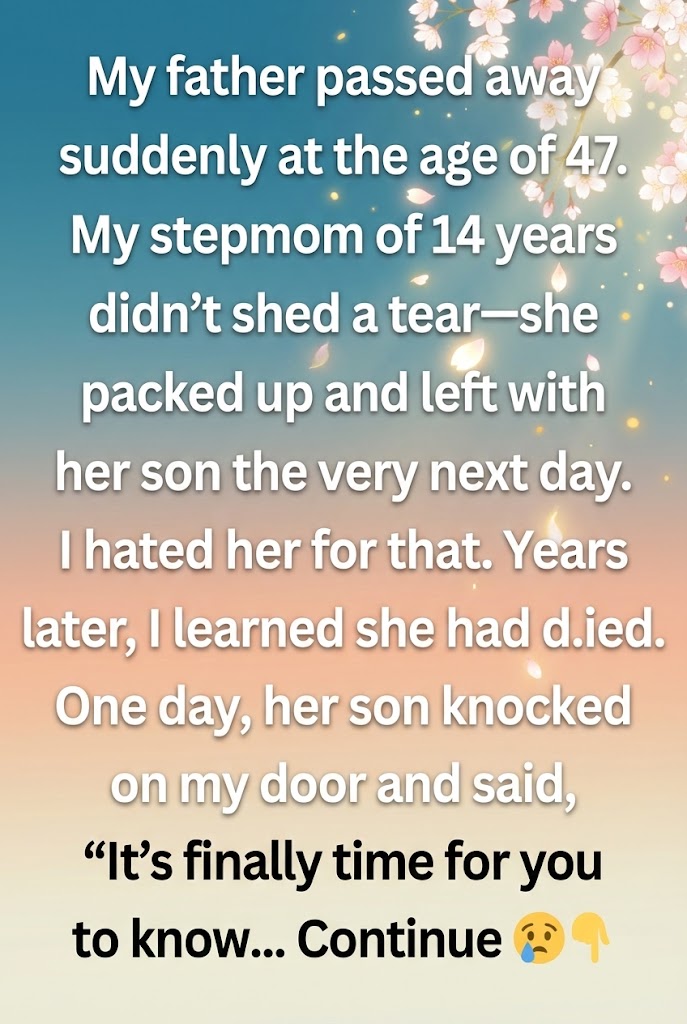 My Stepmom Walked Out After My Dad’s Funeral… 13 Years Later, Her Son Showed Up And Told Me The Truth