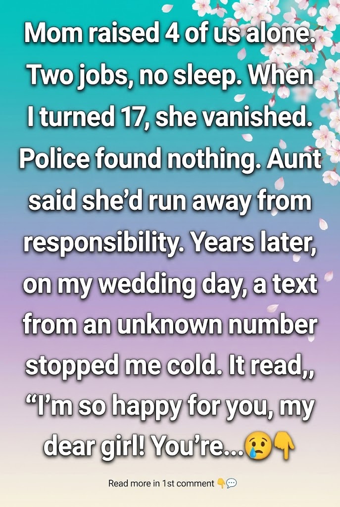 Years later, on my wedding day, while everyone was bustling around me with flowers and makeup brushes, my phone buzzed with a message from an unknown number. I almost ignored it—until I read the words.