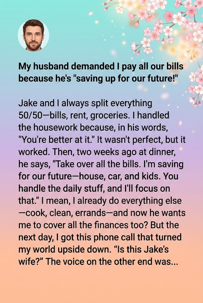Jake’s grin widened, like he had been waiting for this moment. “I’ve been thinking about our future. A house, a nice car, maybe even kids someday. I want to start saving seriously, but it’s hard when I’m splitting everything with you. If you cover the day-to-day stuff, I can put my paycheck straight into our savings account. For us.”