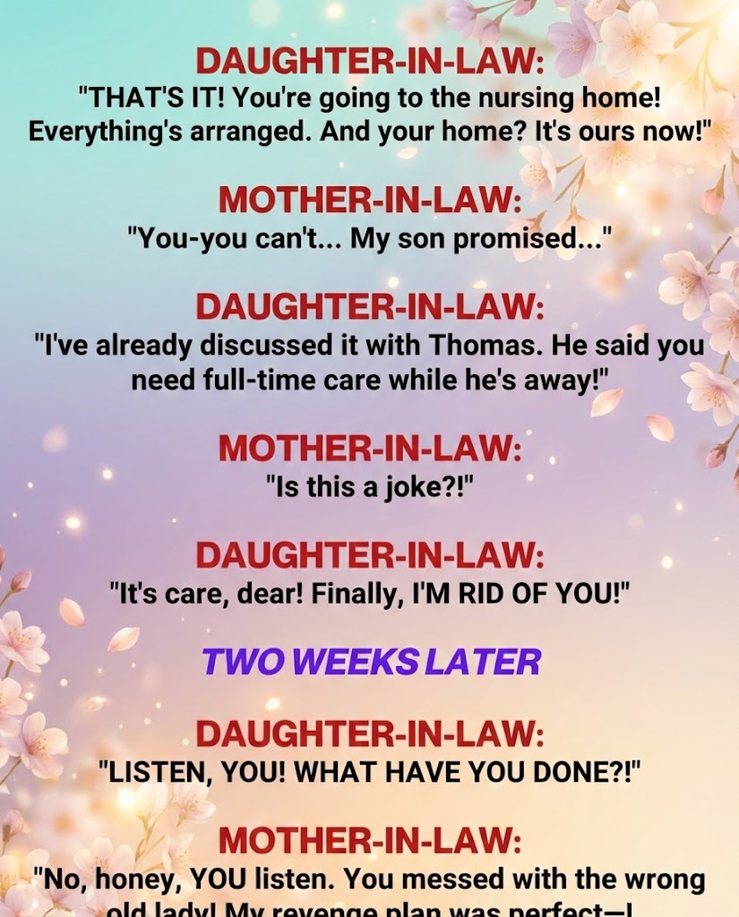 My son promised to care for me, yet he passed me on to my daughter-in-law, who abandoned me at a nursing home like forgotten luggage. That was the moment I understood: if they chose to play dirty, then so could I.