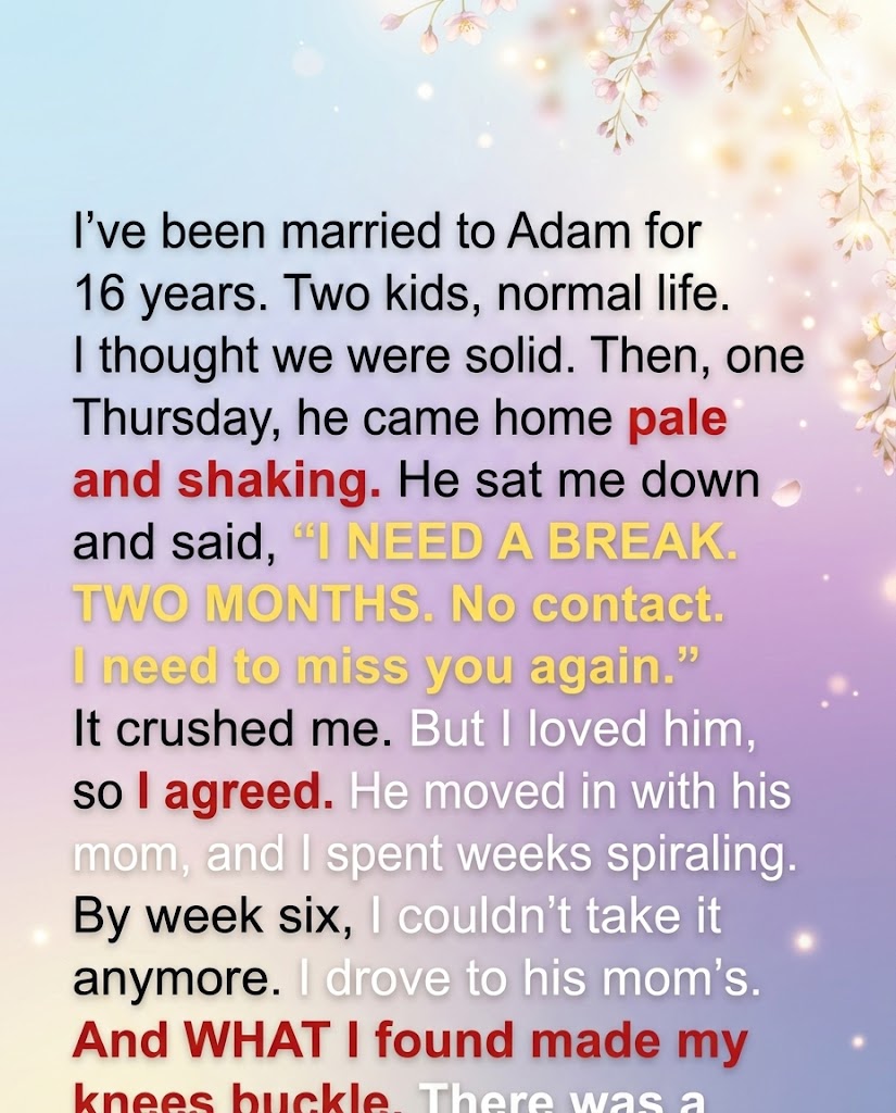 “I need a break,” he said. The words were quiet, almost a whisper, yet they landed in the comfortable silence between us like an anvil. A literal, physical thud.My heart seized. A break? We didn’t do breaks. We were us. We were a team. We had built a life, brick by brick, dream by dream. My mind, a cruel architect of disaster, immediately built a single, towering structure: another woman. It had to be. Why else would he need space? We weren’t fighting. We weren’t distant. Or so I thought. Had I been blind?