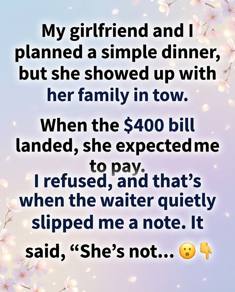 I took it as a good sign. In my mind, meeting family meant seriousness, honesty, a step forward. She mentioned—more than once—that it would really impress them if I paid for dinner. I didn’t think much of it. I assumed it would be her parents, maybe a simple, slightly awkward meal. Paying for a few extra plates felt like a small price for a good first impression.