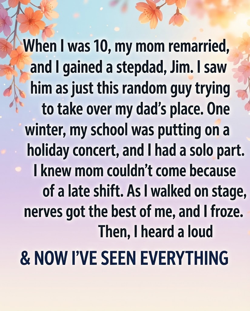 We found our seats, three rows back, center. My mom pulled out her phone, ready to record every missed note. My stepdad sat beside her, shoulders broad, hands resting on his knees. He looked… solemn. Not bored, not annoyed. Just heavy. He always did; a permanent weight seemed to settle on him whenever we were all together. I figured it was just his nature.