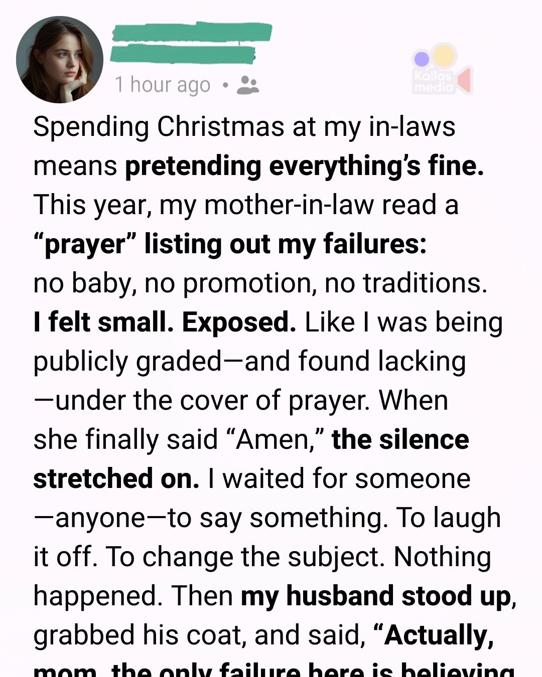 When she finally said “Amen,” the silence stretched on. I waited for someone—anyone—to say something. To laugh it off. To change the subject. Nothing happened.