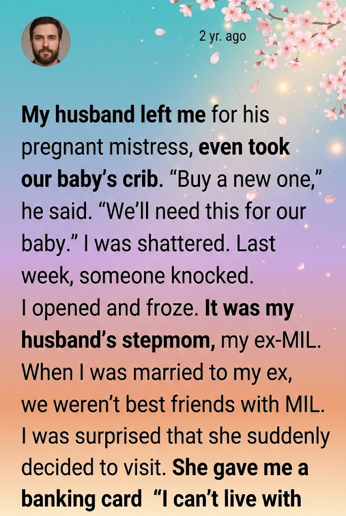 “Take this,” she continued. “There’s enough on it to buy what you need. Food. Rent. Baby things if you decide you’re ready again someday. Enough to give you time to find work and stand on your feet.”