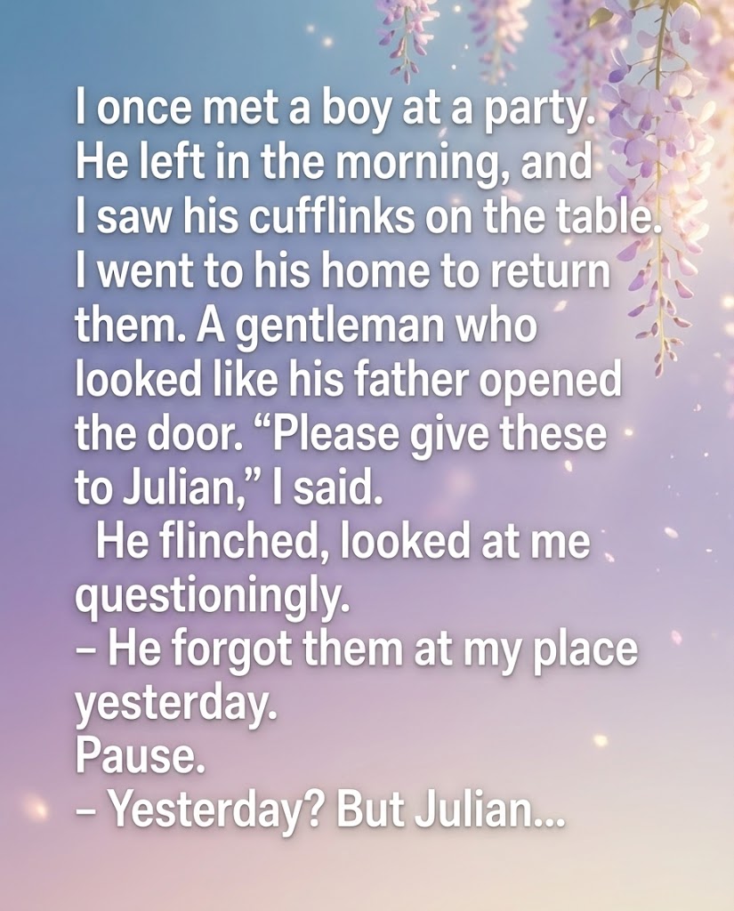 Then came the knock.It was a Tuesday afternoon. I was working from home, wrestling with a spreadsheet. The doorbell chimed, a cheerful, innocent sound. I opened the door, expecting a delivery. Instead, a man stood there. Tall, impeccably dressed, with eyes that seemed to hold a quiet sadness. I didn’t recognize him. He held out a small, dark velvet pouch. My heart gave a strange little lurch even then, a premonition I couldn’t articulate.