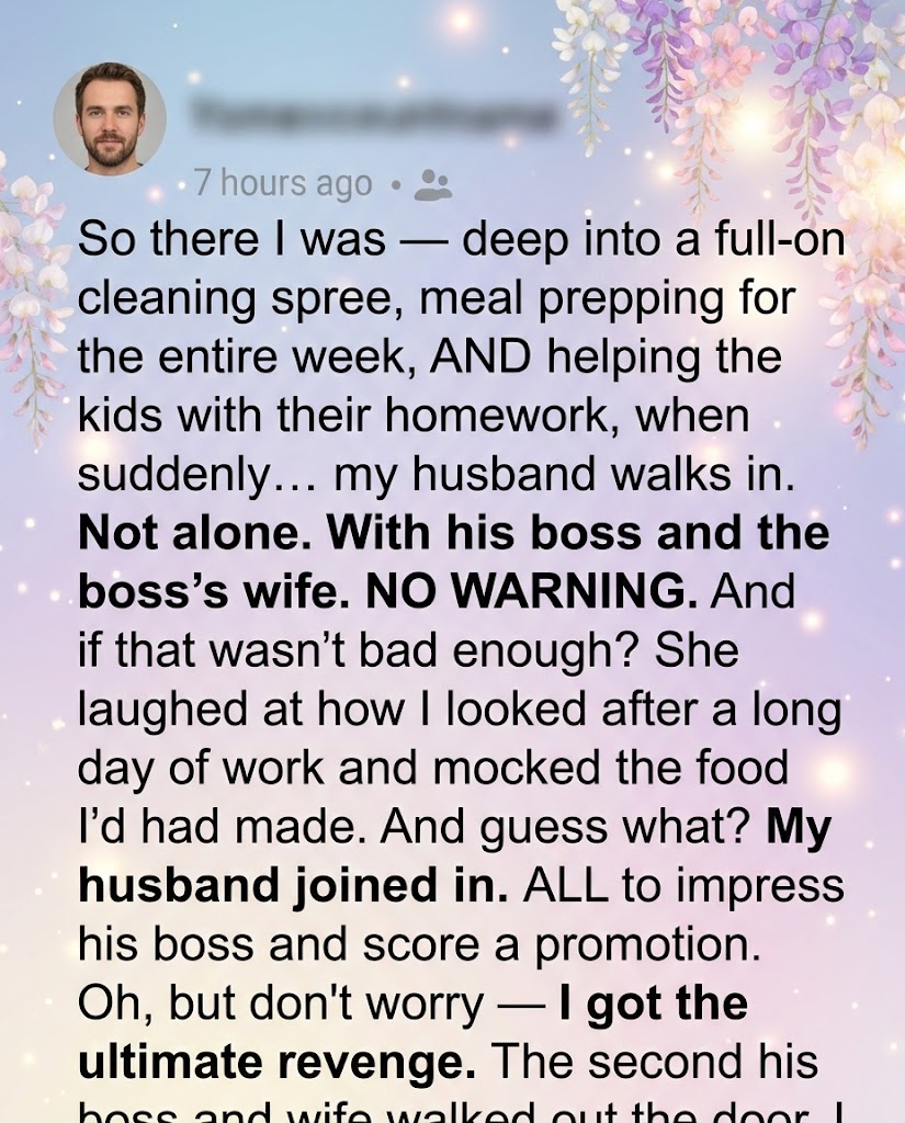 My heart dropped straight into my stomach. My carefully planned evening, my quiet night, evaporated. “YOU WHAT?!” I whispered, panic rising. “You invited your boss and his wife for dinner… without telling me? What time did we agree on? What are we even having?”