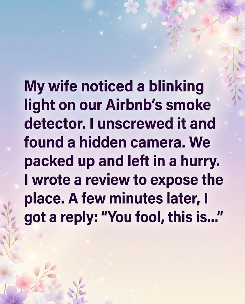 I posted a review. Short, furious, shaking: “Hidden camera in the bedroom.