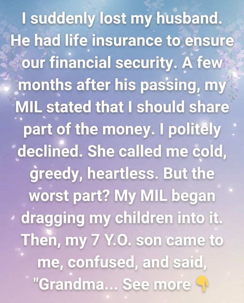 His parents, bless their hearts, were there. Or so I thought. They cooked, they cleaned, they offered quiet comfort. I was grateful, truly. When the topic of finances came up, specifically his life insurance policy, I brushed it off. Too soon, I’d thought. Too crude. They’d mentioned it gently, “Just to make sure everything is in order, dear.” I nodded, numbly. My husband had always handled the money, and I trusted him implicitly. He told me I was the sole beneficiary.