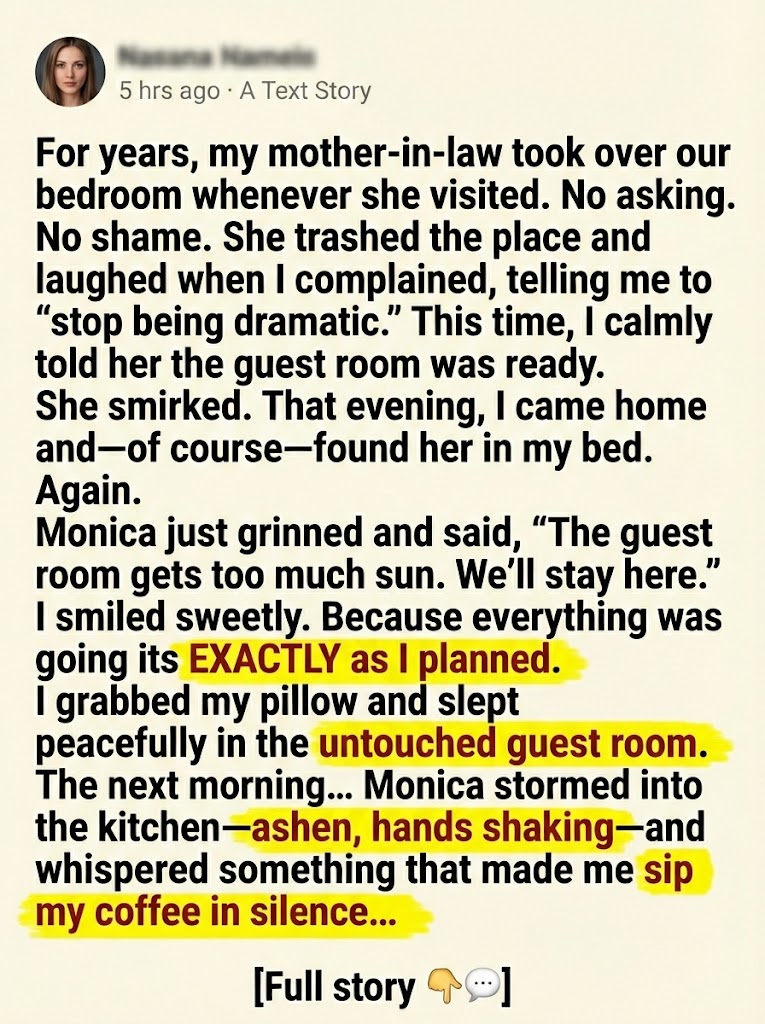 Something snapped. But instead of yelling, I smiled. If she wanted to be a guest, I’d treat her exactly like one.