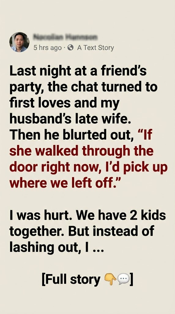 I didn’t even bring it up on the way home. He kept driving like nothing happened, like he didn’t just make a woman feel second place to a ghost. But in the quiet of our room later, I asked, “Did you mean what you said?” He blinked, confused.