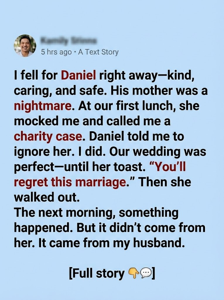 She didn’t use screams or curses; her weapons were sharper. She delivered jabs dressed as observations, constantly implying I was a “broken thing” that her son, with his “giving heart,” was trying to fix. Daniel always defended me in private, telling me to ignore her. “I love you, not her opinion,” he’d say. I believed him.