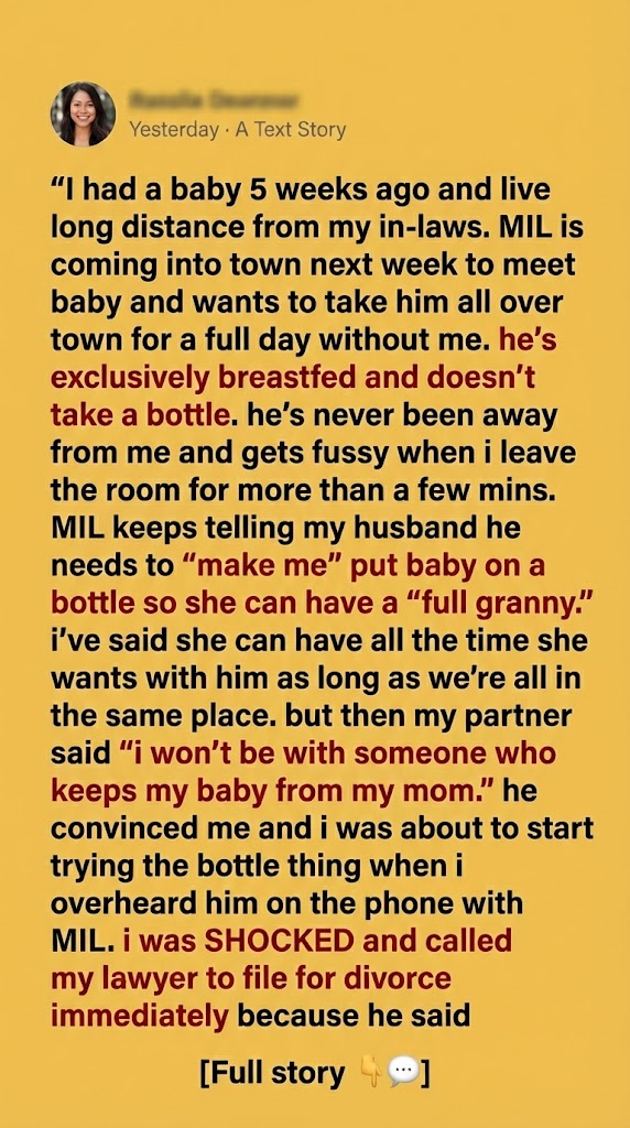 My grip tightened on the phone. “Ruth, I appreciate your excitement, but he’s still so small. Maybe we could all spend time together instead? You could hold him while I’m there, and when he needs to nurse—”