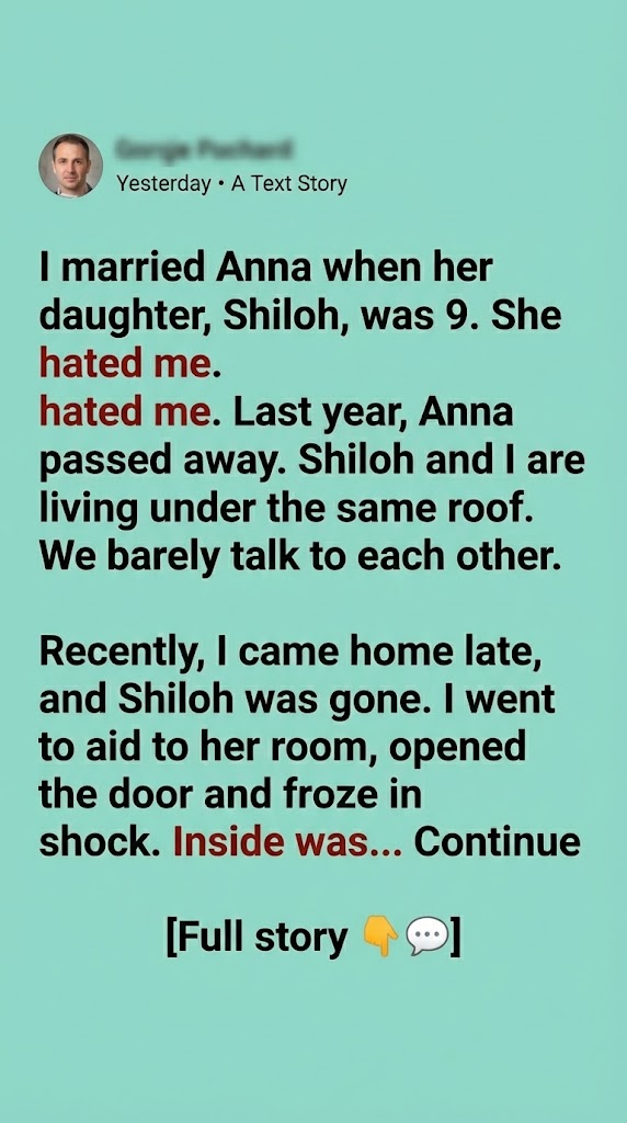 When my wife, Anna, and I got married, her daughter Shiloh was nine years old—a quiet, sharp-eyed kid who watched me like I was an intruder in her life. She hated me from day one. Nothing explosive, nothing dramatic… just a constant, icy wall. No matter what I did—driving her to school, helping with homework, giving her space—she rejected all of it.