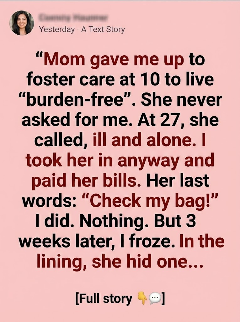 She packed my clothes into a plastic bag, kissed my forehead once, and left me at the foster office without looking back. Later, I learned the truth: she wanted a life without responsibility. Without me. She never called. Never asked about school. Never tried to find me again.
