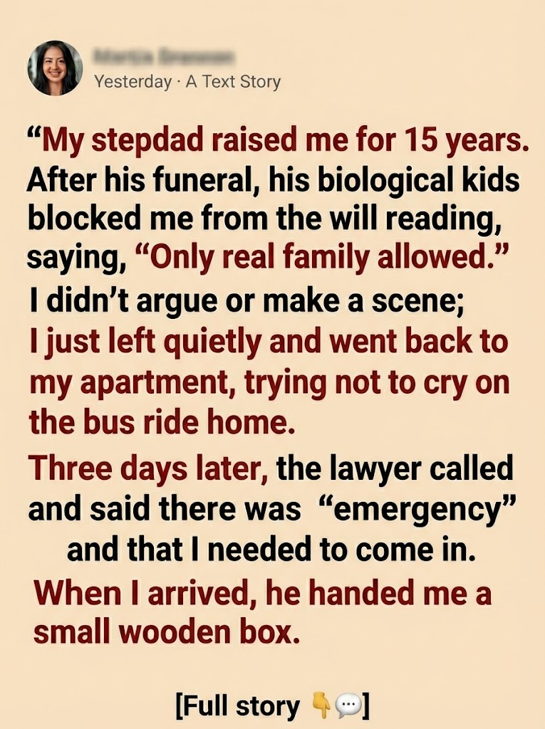 At the funeral, I stood in the back. His biological kids—grown, confident, polished—handled everything. I wasn’t mentioned in the program. I understood. I told myself blood matters.