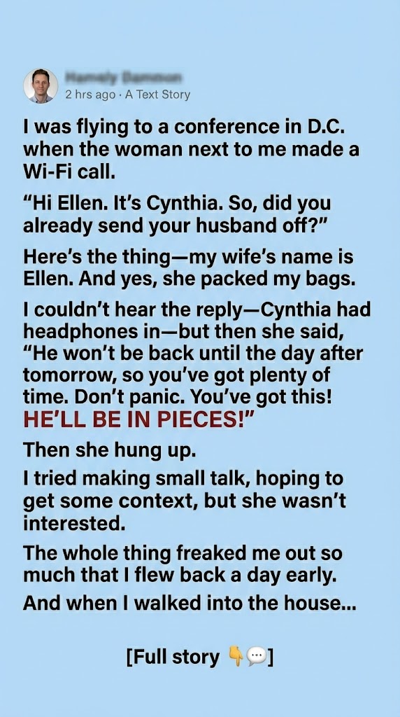 And yes—she had packed my bags that morning, kissed me goodbye, and joked about enjoying the house to herself while I was gone.